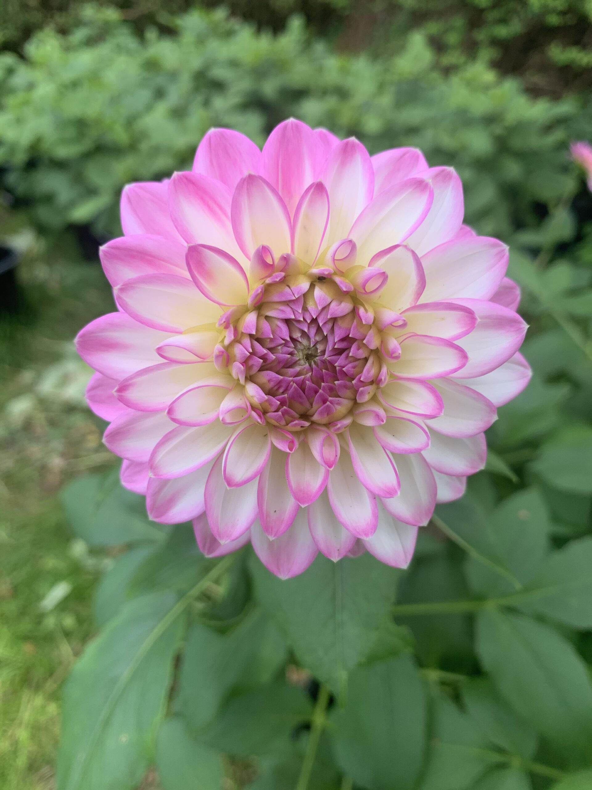 Arbatax dahlia er navngivet efter en italiensk by på Sardinien, og er hvid med delikate, pink kanter. Den skal holdes i kort snor, når den begynder at gro, for hvis du glemmer at knibe den, kan den godt blive lidt ranglet. Blomsterne er skønne – og ser næsten kunstige ud med deres smukt optegnede blade.