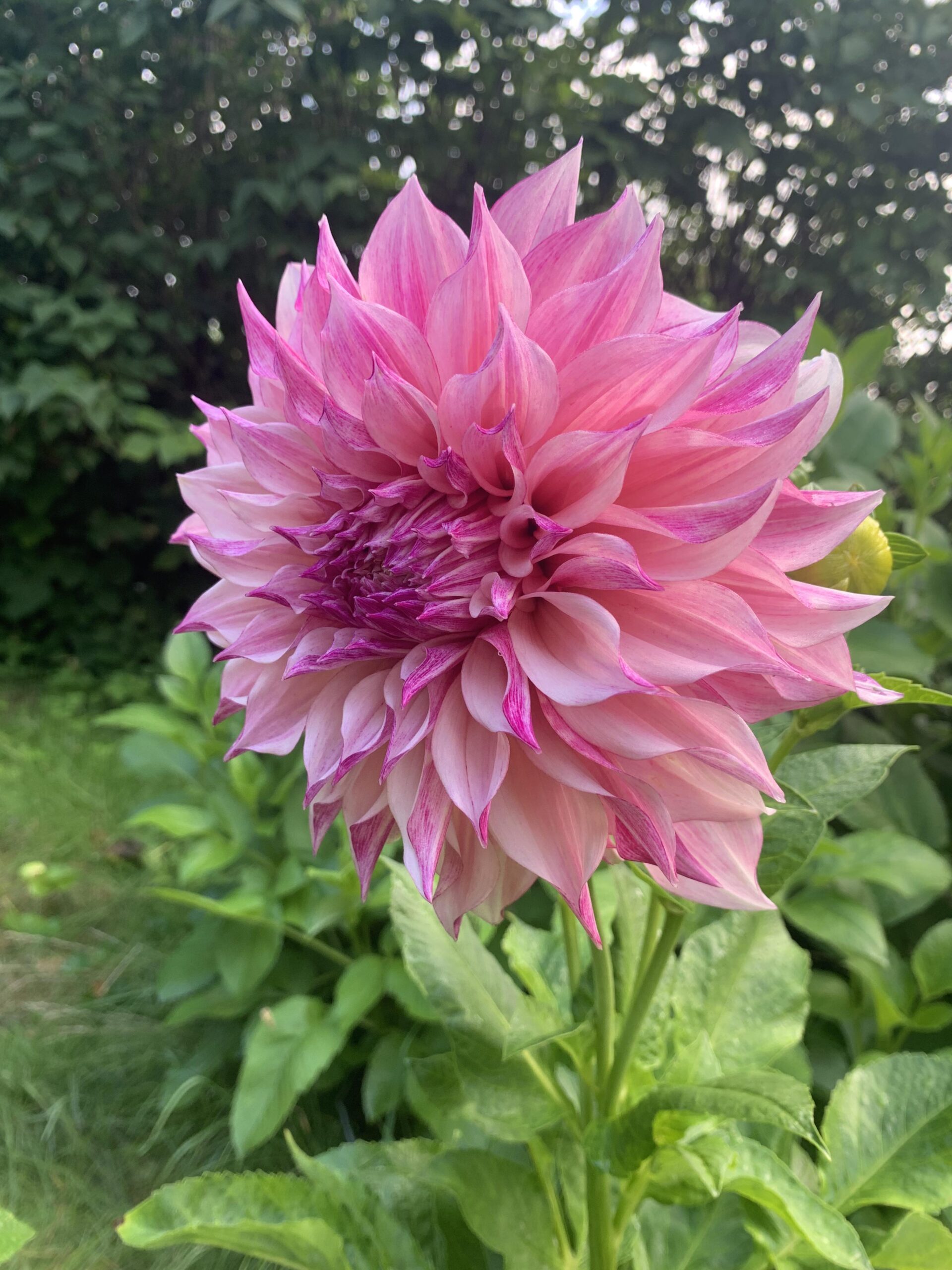 Cafe au Lait Royal georginen er en af sværvægterne i dahlia familien. Den bliver høj, men er stærk og solid – hos mig har den overlevet flere ubarmhjertige stormfulde dage, og det siger ikke så lidt. Jeg kan dog bedst lide, når den ikke er for høj, så jeg kniber den gerne, når planten er ung og har ca. 3-4 bladpar på stænglen. På den måde får jeg en bredere, mere busket plante, som danner flere sideskud med blomster. Og jeg er flittig med at klippe blomsterne til buketter. Men den producerer velvilligt mange blomster henover sæsonen maj til oktober. Det er helt klart en keeper!